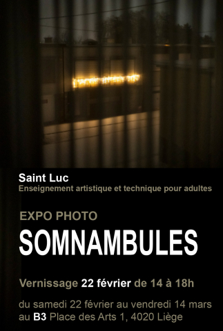 La section photographie de Saint-Luc "Enseignement artistique et technique pour adultes" vous invite à découvrir "Somnambules", une exposition dédiée à la magie de la nuit, au B3 à Liège.